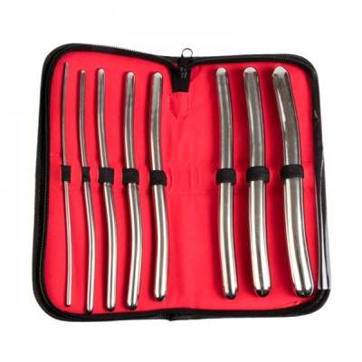 Urethral Sounds The Hegar Sound Set is a urethral dilator sound set with a full set of 8 sounds. Each sound has a different sized end; thus the set offers sixteen sizes, ranging from 3 to 19 millimeters in diameter. The purpose of this sound set is to gradually and gently enlarge the urethra, when inserted into the urethra for such dilation. The sounds can also be used in other areas other than the urethra, such as anally, vaginally or prostate. Each set comes in a zippered velvet-lined case for storage between each orgasmic session. Note: These sounds are made from chrome-plated brass.